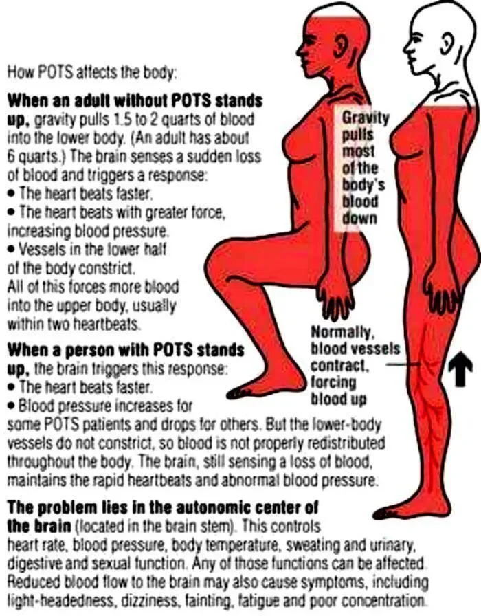 Postural Orthostatic Tachycardia Syndrome (POTS) is a condition that affects the autonomic nervous system, leading to a range of symptoms primarily related to an abnormal increase in heart rate upon standing. Common symptoms include significant heart palpitations, dizziness, and lightheadedness, particularly when transitioning from a sitting or lying position to standing. Individuals may also experience fatigue, weakness, nausea, and fainting spells. Other manifestations can include temperature dysregulation, sleep disturbances, and cognitive difficulties, often referred to as "brain fog." These symptoms can vary in intensity and may significantly impact daily functioning and quality of life. Proper diagnosis and management are essential for individuals experiencing these challenges.